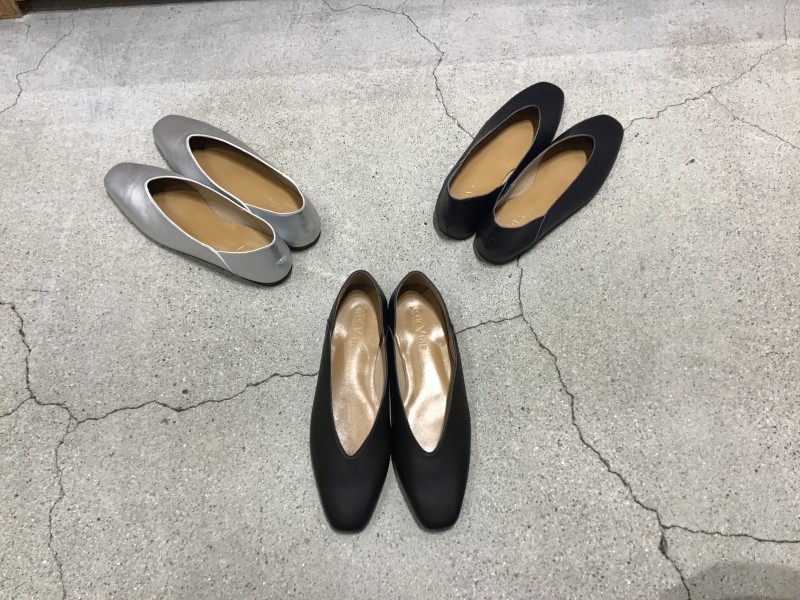 ソフトレザーが足に優しくフィットし、すっきりとしたスクエアトゥとVカットラインが足元を綺麗に見せてくれます◎