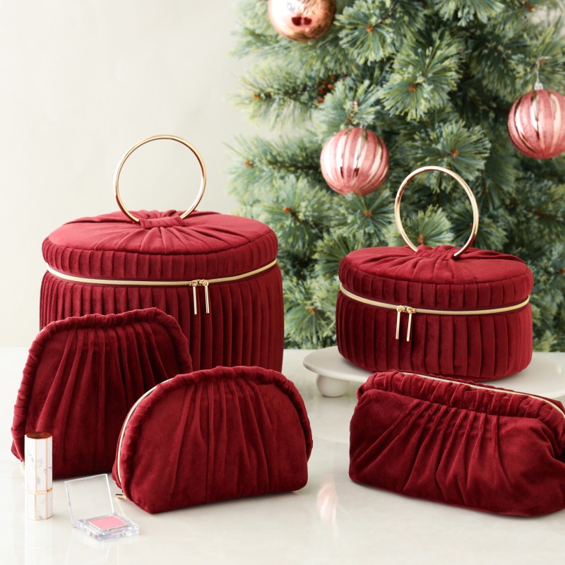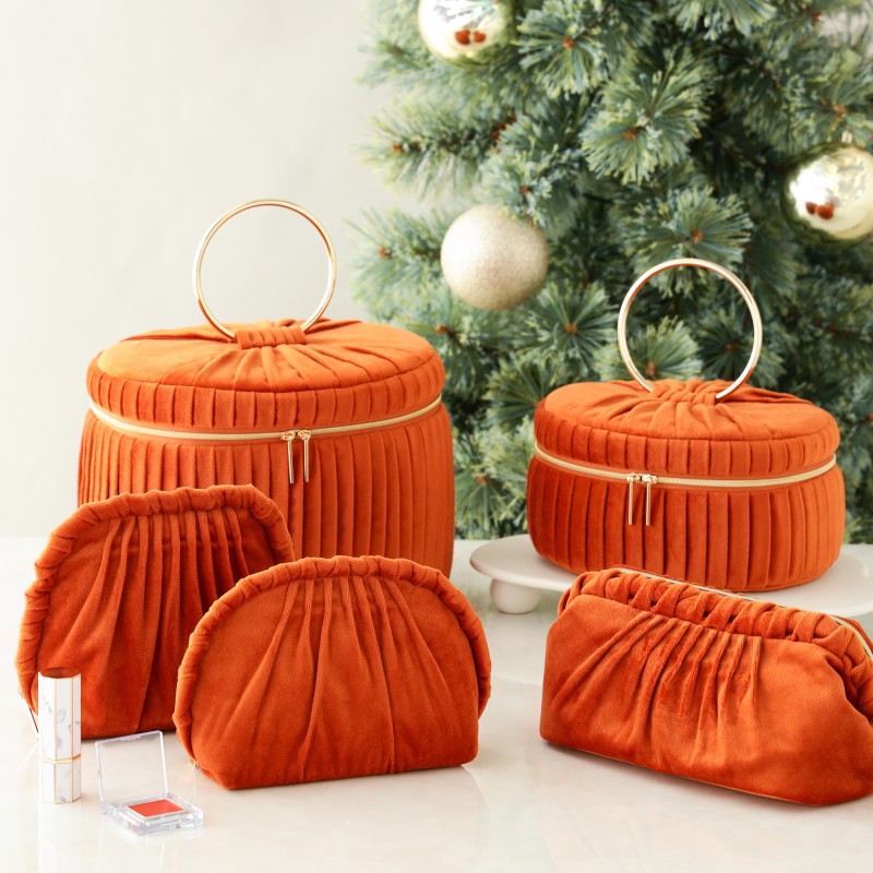 ベロアプリーツ バニティポーチ S 3,500円、L 4,500円
