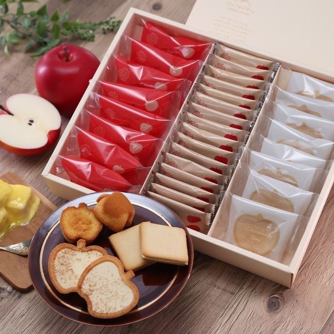 りんごとバター。人気のフィナンシェ8個、クッキー16枚、チョコタルト8個が入ったギフトです。