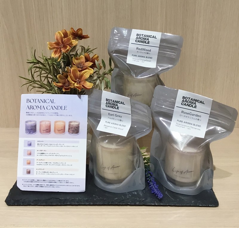 天然精油の香りをそのままに一つ一つ丁寧に手作りされたアロマキャンドル、