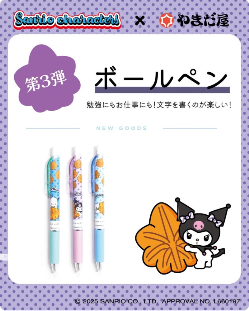 2025.12.21 NEW サンリオボールペン 各種660円 やまだ屋×サンリオキャラクターズ初のコラボ! シナモロール、クロミ、ポチャッコが登場。 第3弾は勉強にも仕事にも使いたくなる、ボールペンです。 やまだ屋 ヤマダヤ カテゴリー おみやげ& スイーツ 業態 広島銘菓 フロア minamoa 1F おみやげ・レストラン MAP 電話番号 082-258-8677 営業時間 9:00~20:00 ショップ詳細 BACK