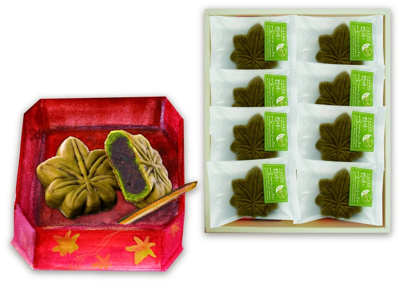 抹茶記事に甘さ控えめの餡、くるみが良いアクセントになってます。