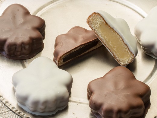 チョコレートでコーティングした、ケーキ生地のもみじ饅頭です。