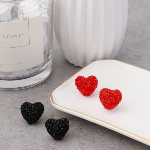 カットビーズがキラキラかわいい、ぷっくりハートモチーフのピアスです。
