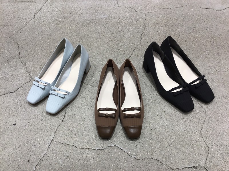 【ダブルリボンスクエアトゥパンプス】