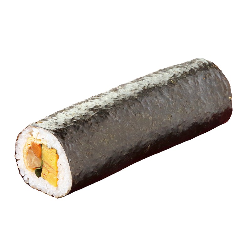 センナリ製のすし酢を使用したやさしい酸味の酢飯に、大きくジューシーな厚焼き玉子に、ちからのだしで味付けした人参、ごぼう、いなり寿司に使用している味付けあげ、大葉の種類の具材が入っています。