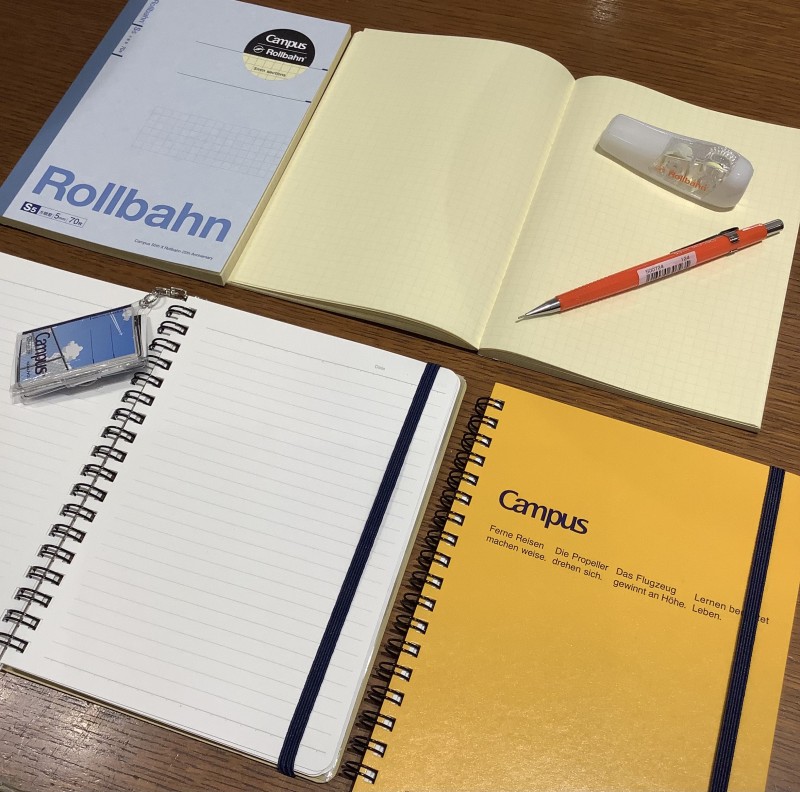 見覚えのある佇まいのノートは、表紙に「Rollbahn」のロゴが配され、ぺージを開くと横罫ではなくクリーム色の方眼紙が現れます。