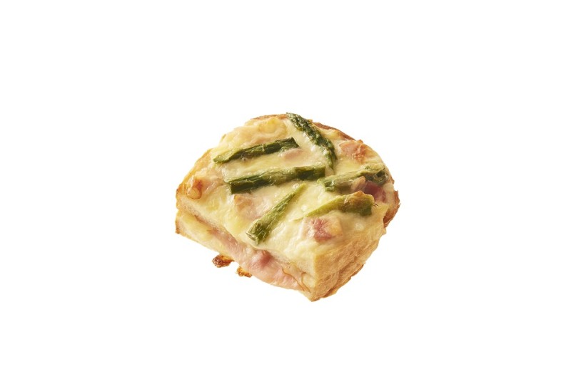 上にはアスパラガス、ベーコン、ミックスチーズをトッピング。