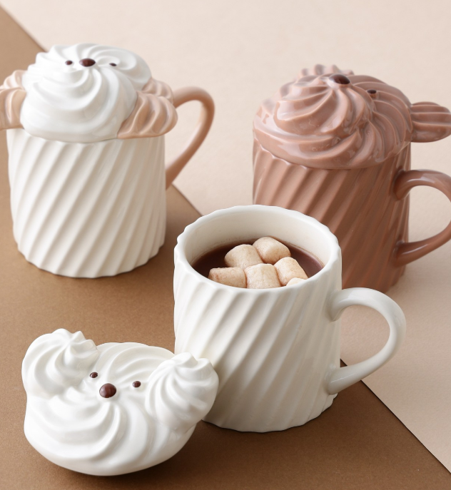 まるでホイップのデコレーションのような、いぬとくまの顔がキュート🤍遊び心のあるデザインのマグカップ☕