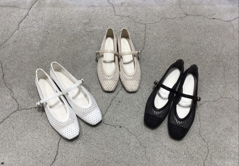 メッシュ素材に小さなラインストーンをあしらった上品に輝くフラットパンプス☆