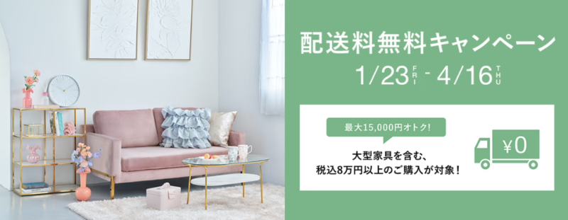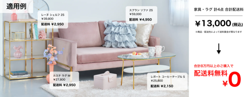 大型家具・ラグも!合計8万円以上のご購入で配送料が無料