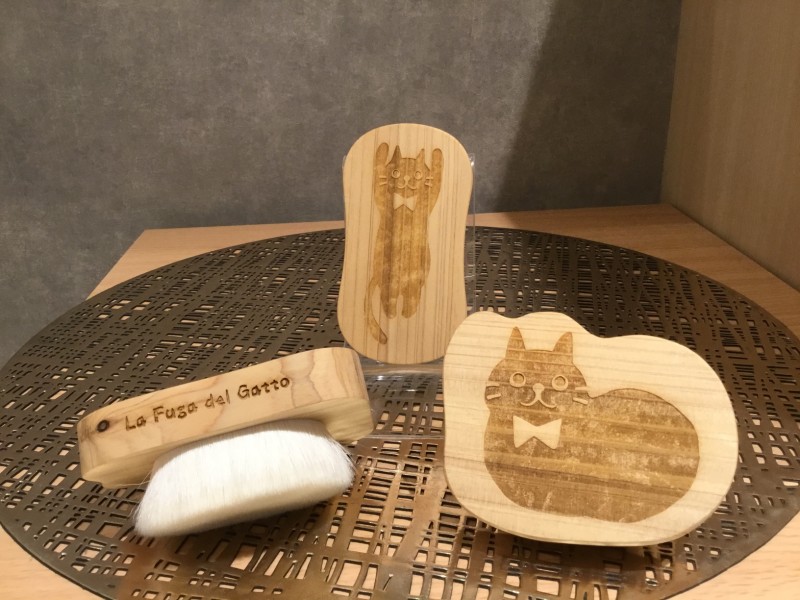 お化粧にも使えそうなフワフワの毛先。天然の山羊毛と人工毛がMIXされて出来ており、毛量たっぷりのブラシは、熊野筆の毛先を大切にする技術でチクチクすることはありません。