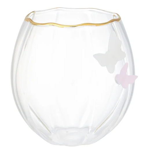 お花をイメージしたグラスに蝶々がとまって見えるようなタンブラーです🌸