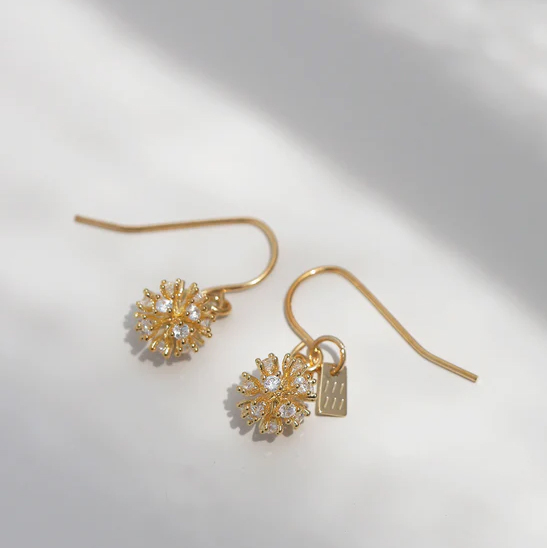 小ぶりながら光り輝くモチーフは、華やかな横顔に仕上げてくれる一品。揺れ感あるデザインが女性らしさが際立ち、程よい存在感を与えてくれます。