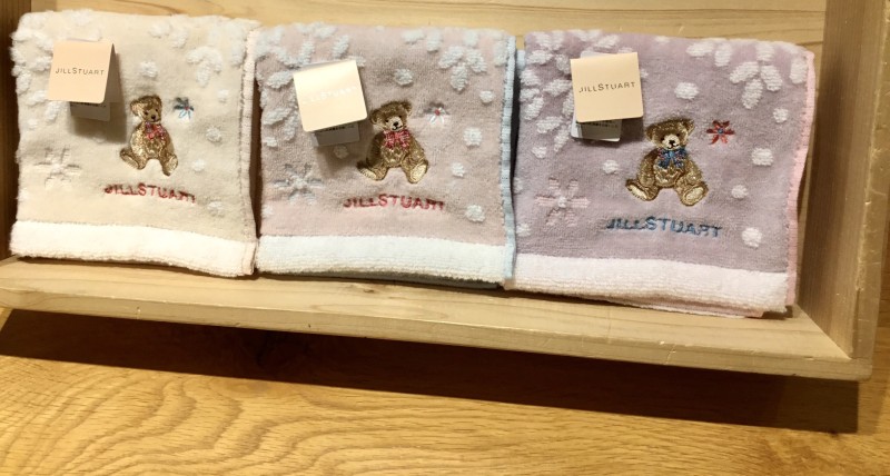 フラワーデザインとベアの刺繍を組み合わせたJILL STUARTのタオルハンカチ。