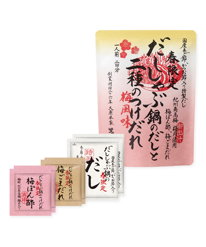 梅香る二種のつけだれをご用意した、春限定のだしししゃぶ鍋です。