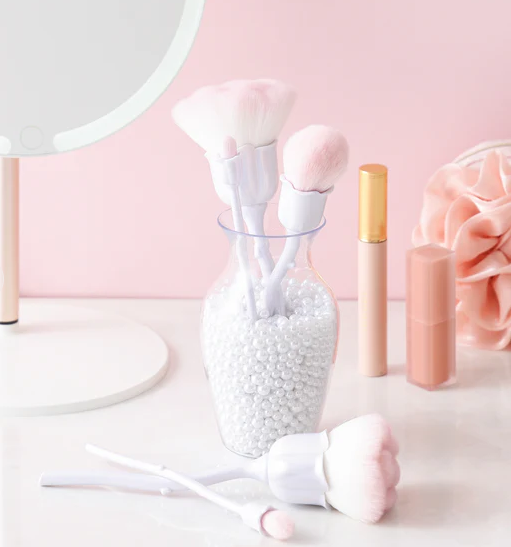 花瓶のような優雅なフォルムのクリアケースに、メイクの幅がぐっと広がる5本のメイクブラシをセットしました🌹💞