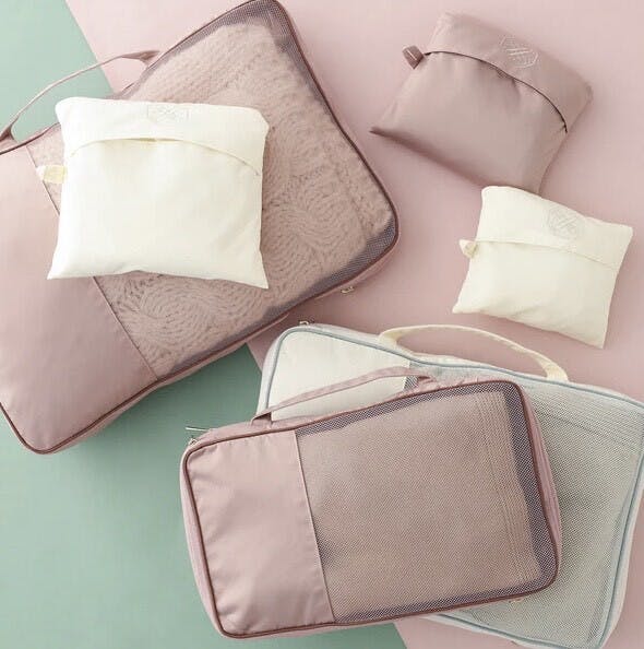 かさばりがちな荷物をコンパクトに持ち運べるので旅行に大活躍。使わない時は小さく折りたためます。