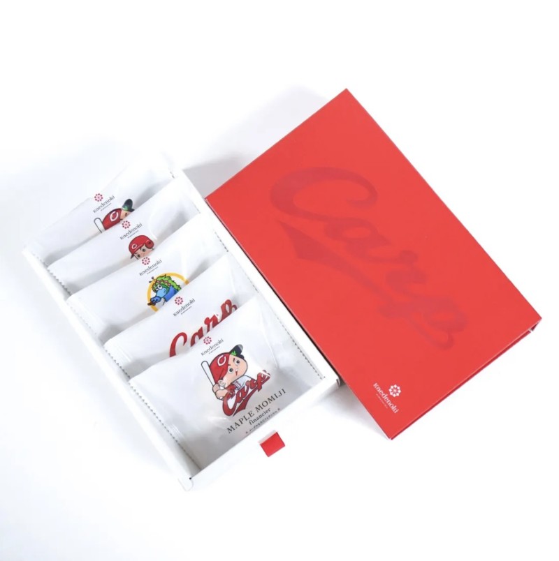 Carpロゴやカープ坊やなど、お馴染みのデザインがメープルもみじフィナンシェのパッケージに!!