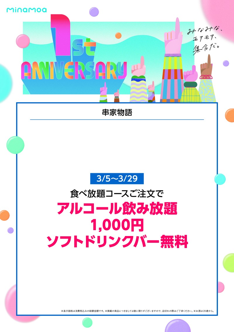 【串家物語】ミナモア1周年フェア