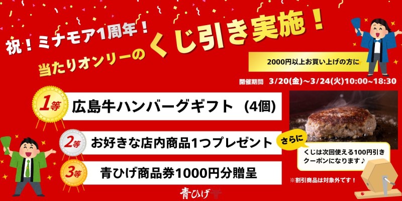 ①2,000円以上お買上げでハズレ無なしのくじ引き開催