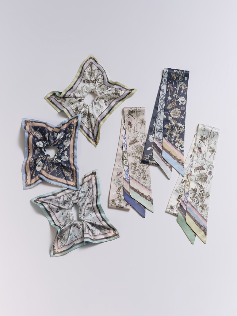 ミュシャの娘であるヤロスラヴァの肖像が描かれたコルナ紙幣からインスパイアされたスクエアシュシュが登場。