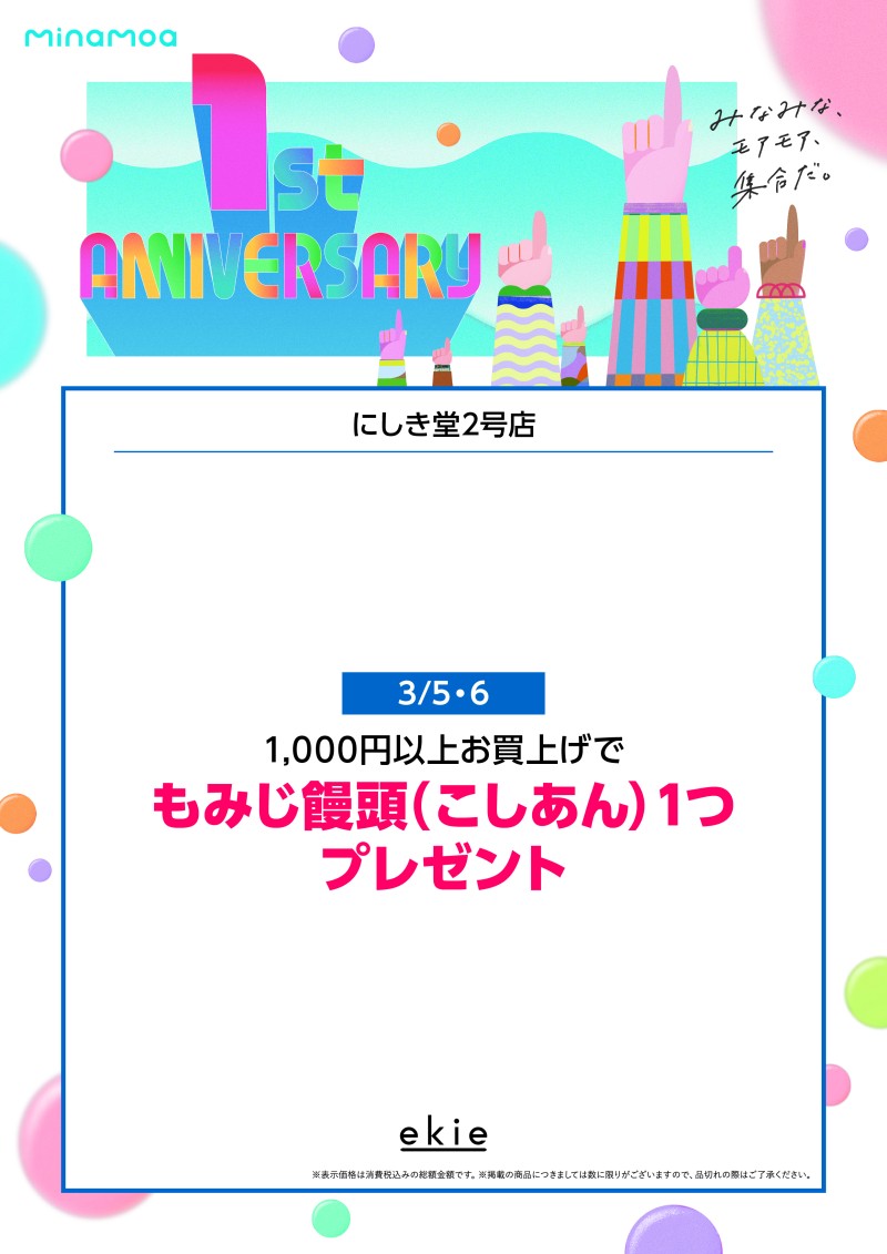 【にしき堂2号店】ミナモア1周年フェア