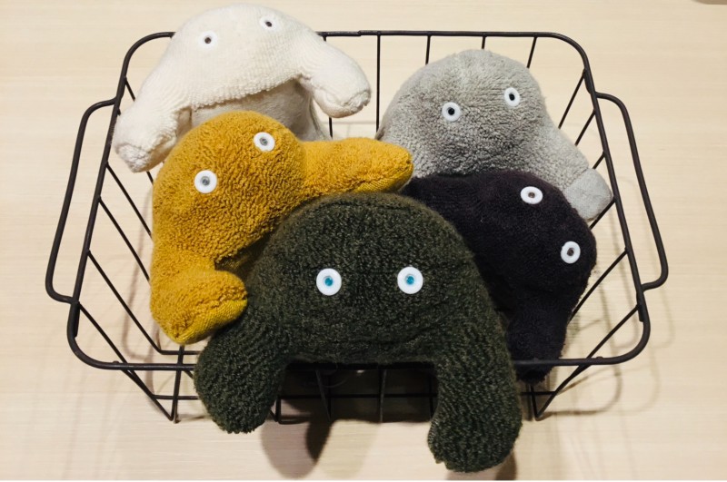 クツシタ人はコンテックスの人気商品である”履くタオル”の品質基準をクリアできなかった”訳あり靴下”をアップサイクルして生まれたぬいぐるみです。