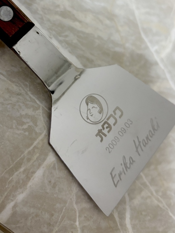 オタフクの小へらに名前やメッセージ、日付などお好きな言葉でオリジナルへらを作成いたします。