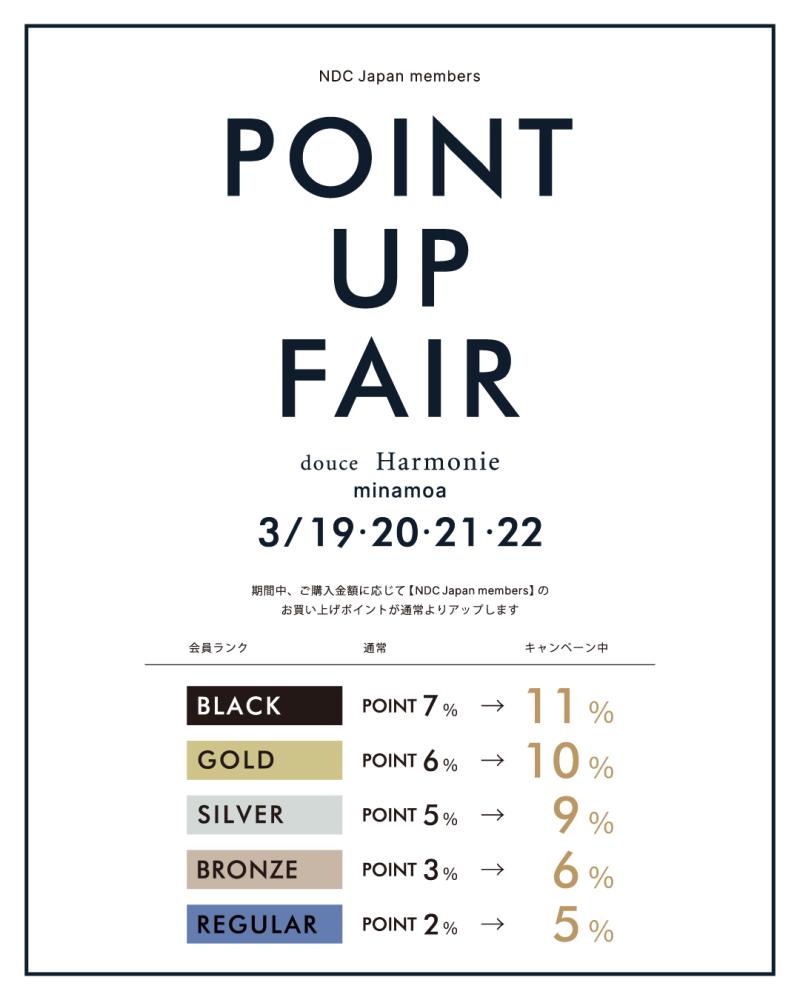 期間中 NDC japan メンバーズ会員様は、会員ステージに応じて通常よりお得なポイント還元でお買い物をお楽しみいただけます✨