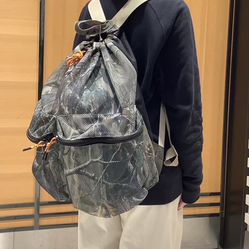 厚手でしなやかな素材感のメッシュ生地バッグはおでかけにピッタリ。