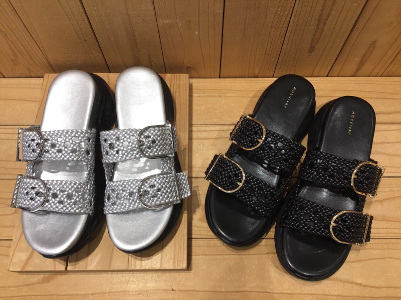 素材の表情を活かした編みデザインが、涼しげな印象のダブルベルトサンダル♪