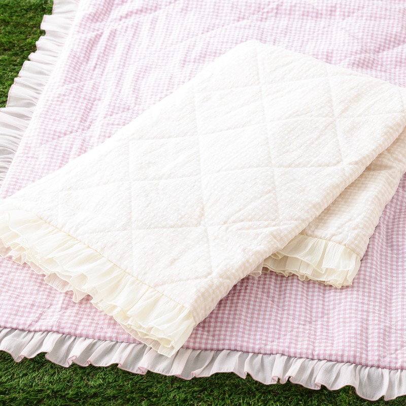 チェック模様×フリルのデザインが可愛いレジャーシート!