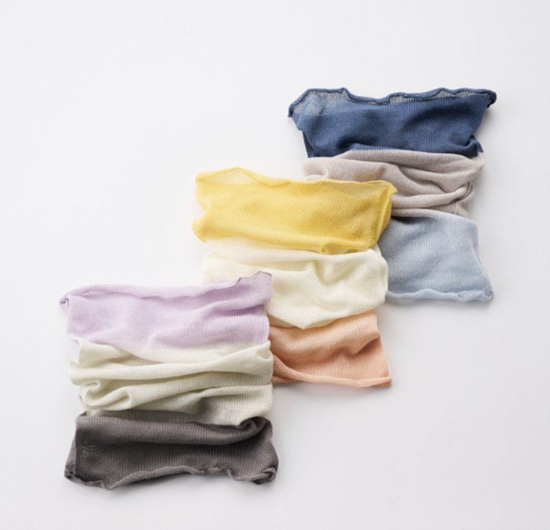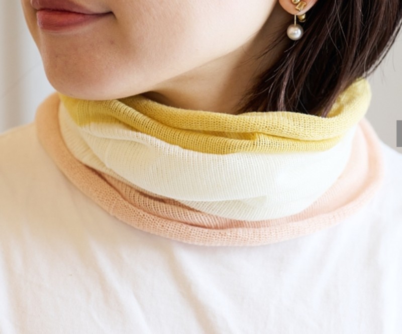 ガーゼのようにふんわりと空気を含み、優しく首元を包み込んでくれ、夏の日差しや空調での冷えから首元を護り活躍します。