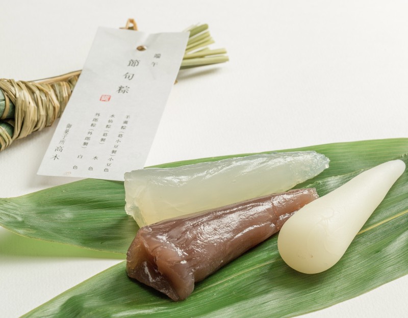 米粉製、柔らかい葛を使った水仙粽、葛に餡を練り込んだ羊羹粽の3本束です!