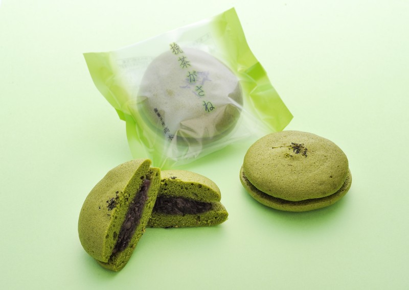 ふんわりとしたお茶の蒸し生地で粒餡をはさんだお菓子です