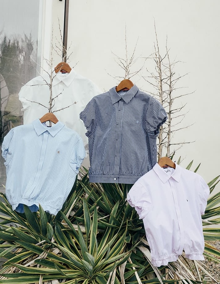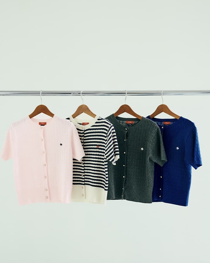 1枚でレイヤードスタイルが完成するPOLO襟のニットカーディガンをはじめ、夏らしいドライタッチのクルーネックカーディガン、立体感のあるバルーンスリーブが印象的なコンパクトシャツ、スタイリングにさりげなくなじむ刺繍Tシャツの全4型を展開します。